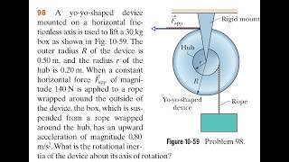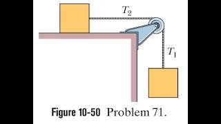 A pulley, with a rotational inertia of about its axle and a radius of 10 is acted on by a force appl