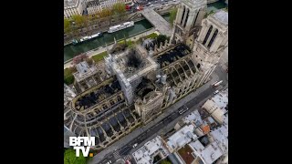 Les images de la bâche provisoire sur Notre-Dame filmées par un drone