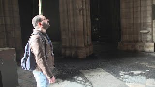 La gorge serrée, le chef des visites guidées de Notre-Dame découvre l'ampleur des dégâts