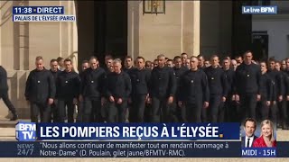 Près de 300 sapeurs-pompiers arrivent à l'Élysée, où ils vont être reçus par Emmanuel Macron